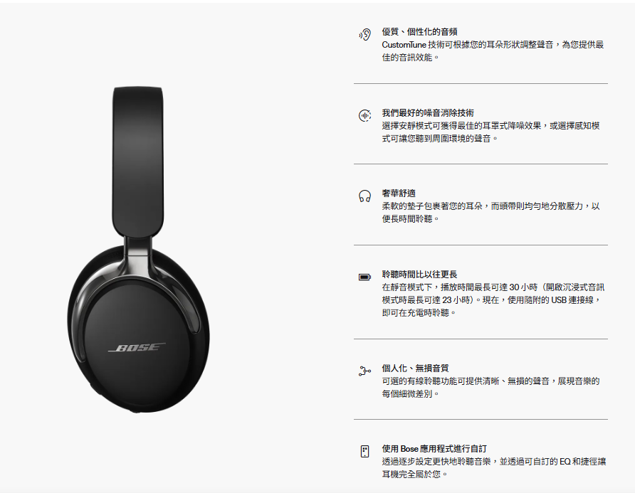 新一代 QC Ultra 耳機具有更出色的噪音消除功能、更身臨其境的模式、精緻的材質和輕鬆的播放功能,可提供更奢華的聆聽體驗。