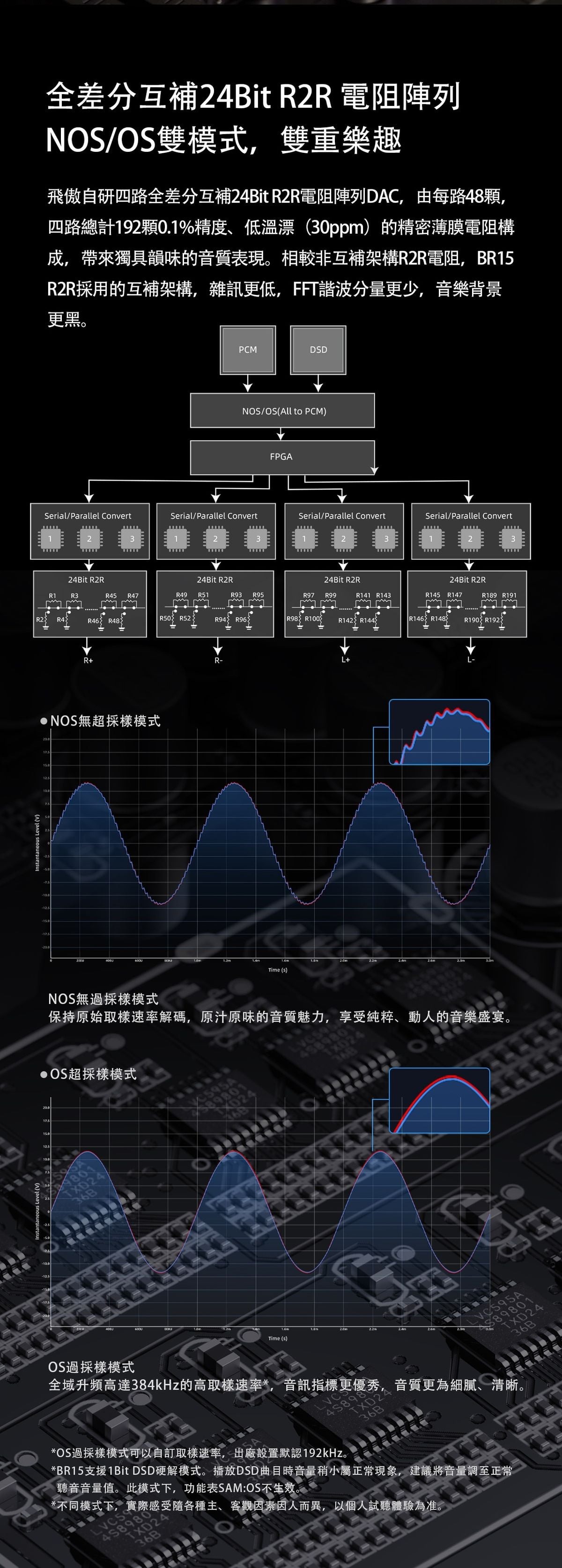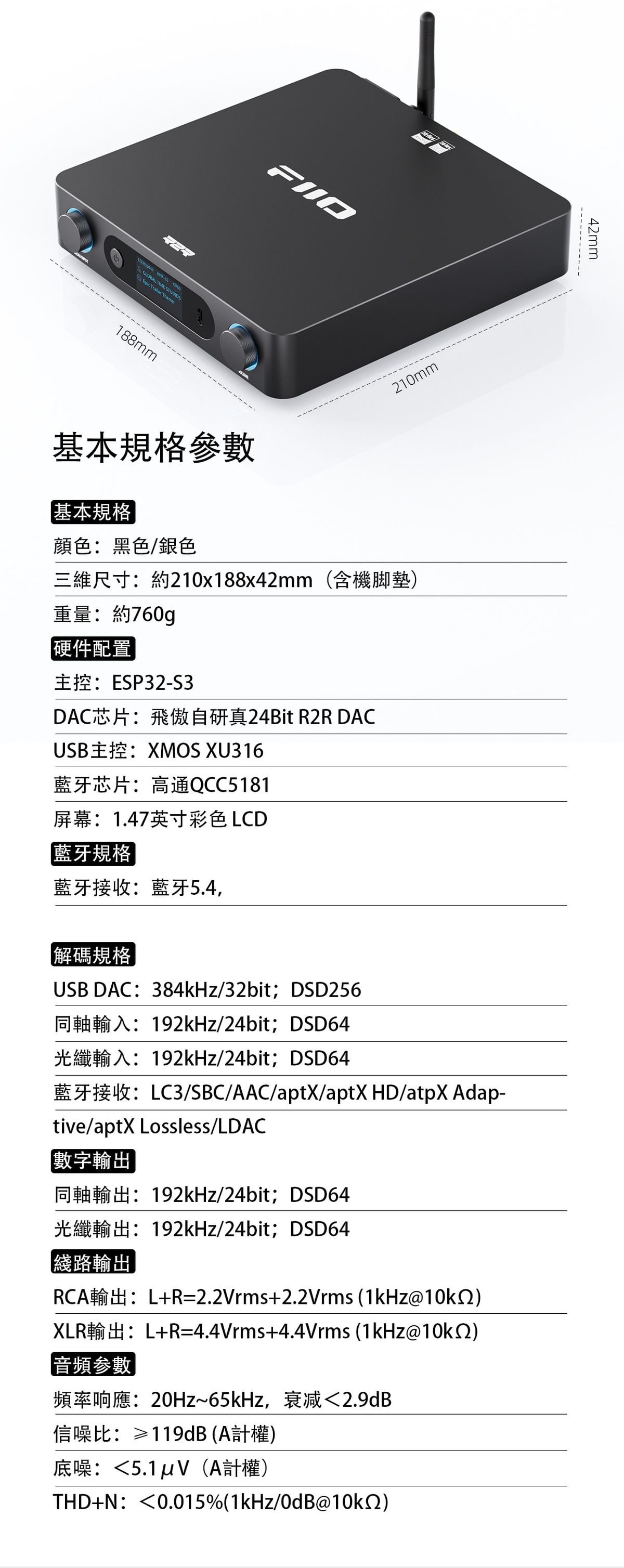 - DAC晶片:飛傲自研真24Bit R2R DAC