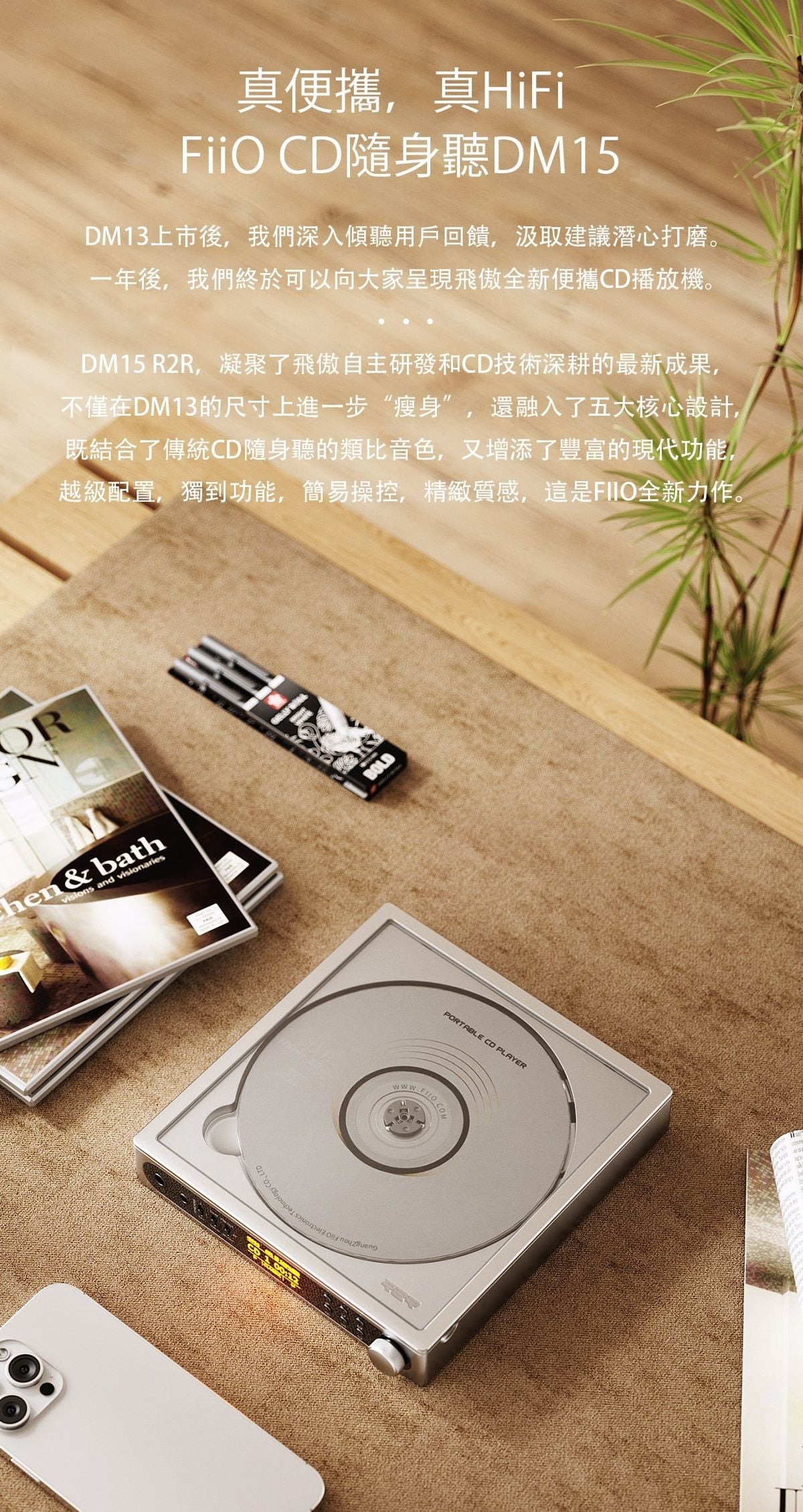 DM15 R2R,凝聚了FiiO 自主研發和CD技術深耕的最新成果,不僅在DM13的尺寸上進一步“瘦身”,還融入了五大核心設計,既結合了傳統CD隨身聽的類比音色,又增添了豐富的現代功能,越級配置,獨到功能,簡易操控,精緻質感,這是FIIO全新力作。