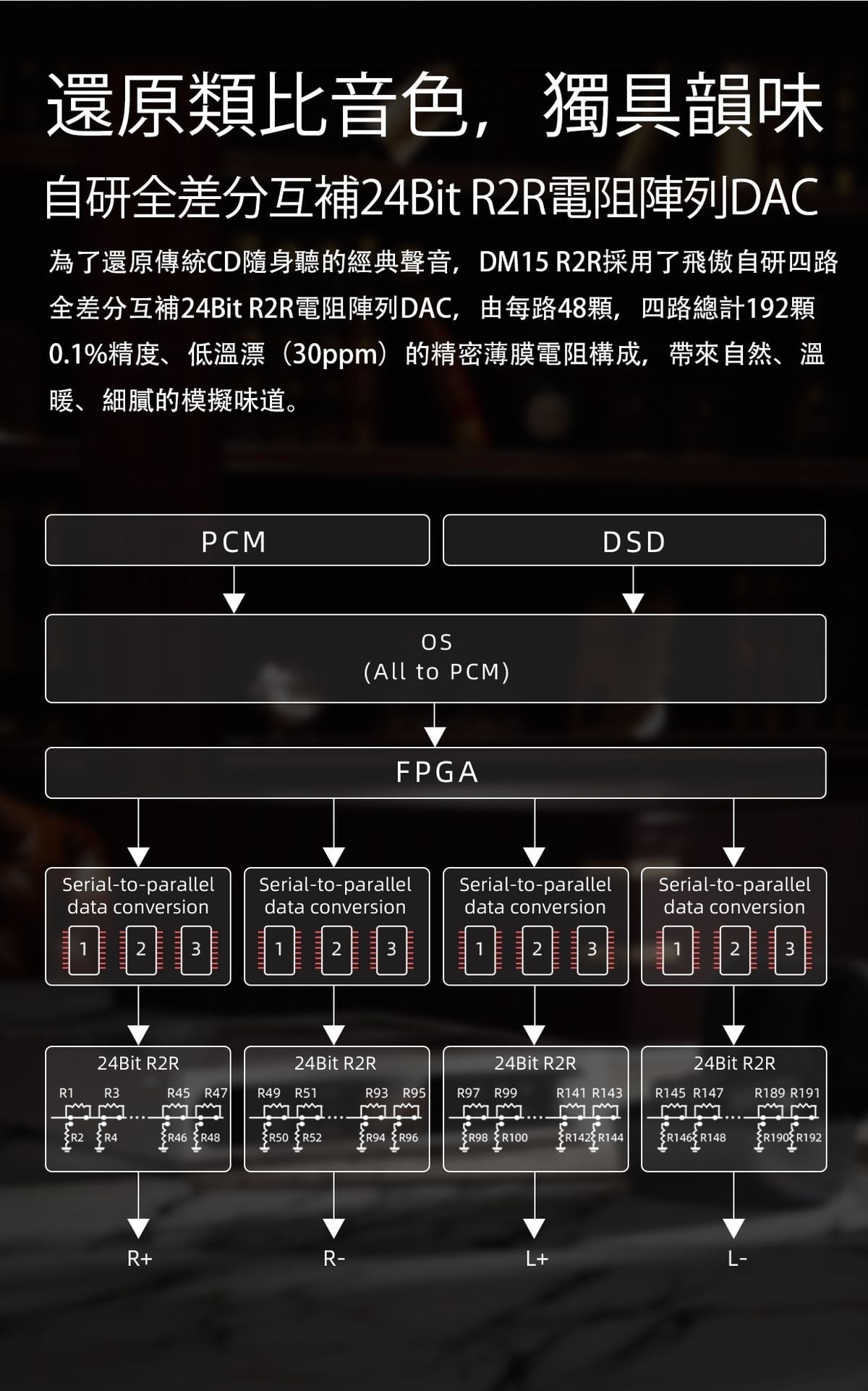2. 還原類比音色,獨具韻味 ~ 自研全差分互補24Bit R2R電阻陣列DAC